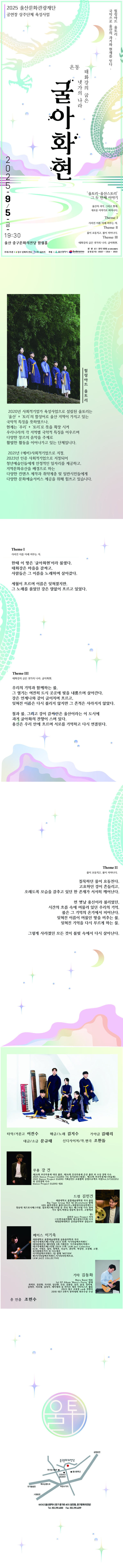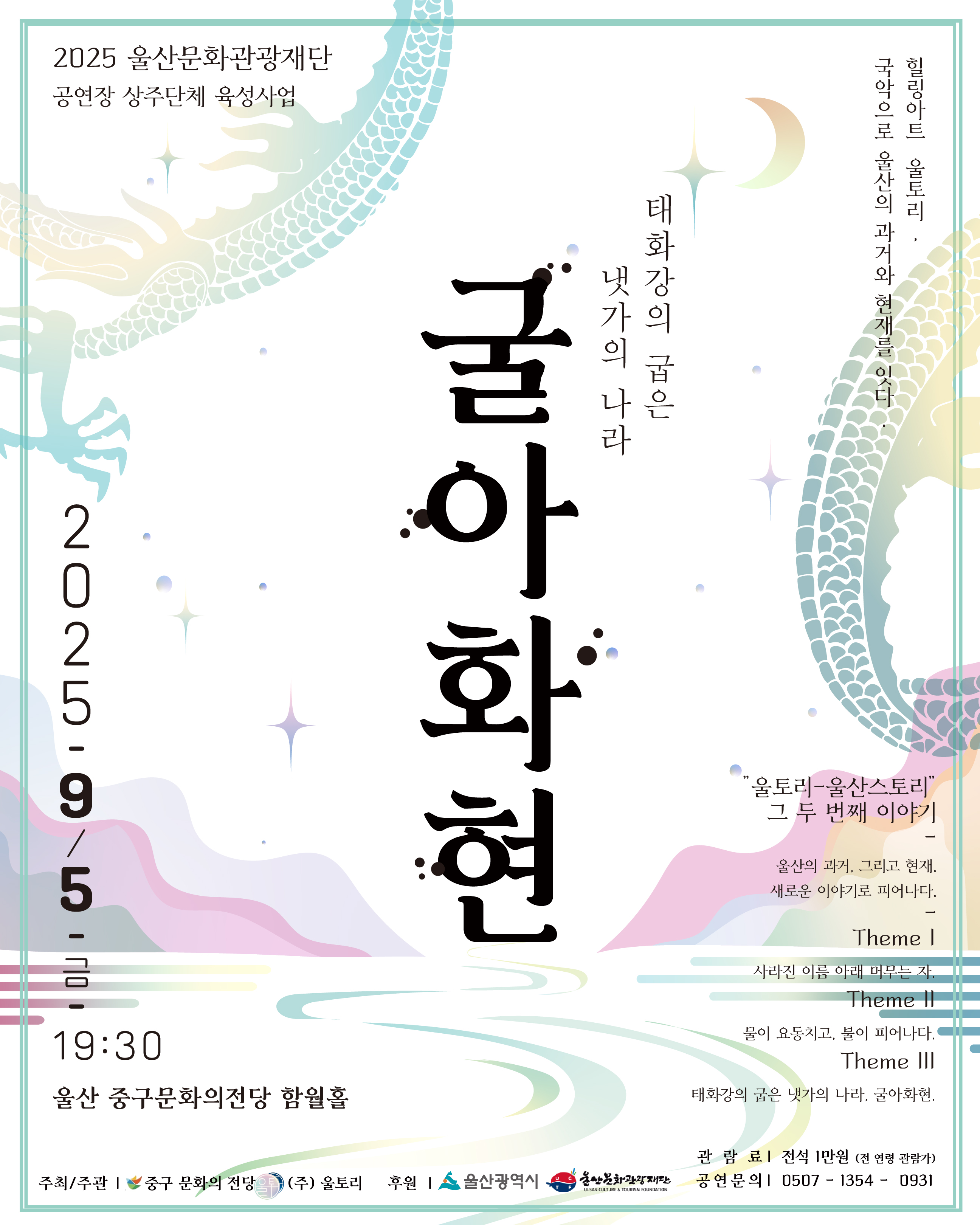 2025 9월 울산문화관광재단 2025 공연장상주단체 육성지원사업 공연 : 울토리-우리토리Ⅱ “굴아화현:태화강의 굽은 냇가의 … 울토리 0 21 2025.12.23 10:12 2025 9월 울산문화관광재단 2025 공연장상주단체 육성지원사업 공연 : 울토리-우리토리Ⅱ “굴아화현:태화강의 굽은 냇가의 나라”